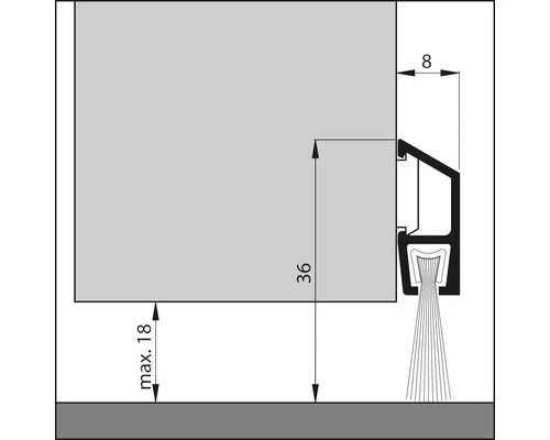 Aluminium dorpelprofiel voor toepassing onderaan de binnenzijde van de voordeur of voor de binnendeur.