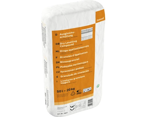 efficiënte opbouwen voor geluidisolatie, brandwerendheid en warmte isolatie maken. De droge egalisatiekorrels zijn specifiek geschikt voor de toepassing onder Fermacell Vloerelementen en Fermacell Powerpanel Vloerelementen. Bij storthoogten >100 mm en