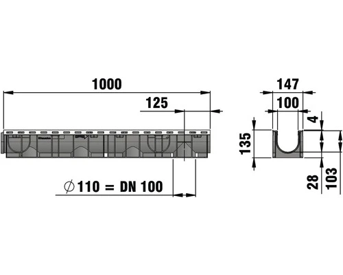 Hauraton Recyfix Plus 100 Gootonderdeel Type 01 Van PP 1000 X 147 X 135 Mm