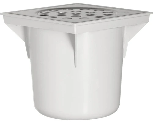 MARTENS Vloerput, Rvs/ Wit ABS-kunststof, Onderuitloop, 20 X 20 Cm