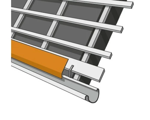 Het slagregenschort is het eerste toebehoren dat na de dakgoot maar voor de condensbeschermfolie gemonteerd wordt. Het overdekt de dakgoot ca. 5 cm.