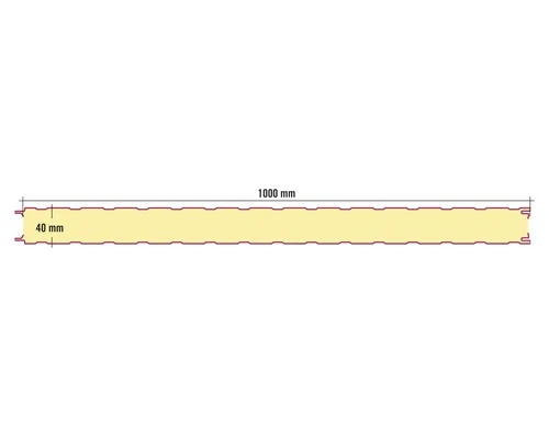 Het bestaat uit twee stalen omhulsels (buitenste 0,50 en binnenste 0,40 mm). Daartussen bevindt zich een 40 mm dikke isolatiekern van hard PUR-schuim (warmtegeleidingscoëfficiënt: 0,024W/m*K).